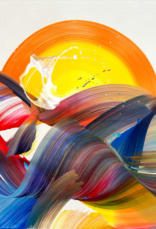 Through pouring, dripping, and layered pigments, his paintings transform raw emotion into poetic form, inviting viewers to confront inner feelings and uncover hidden shadows..